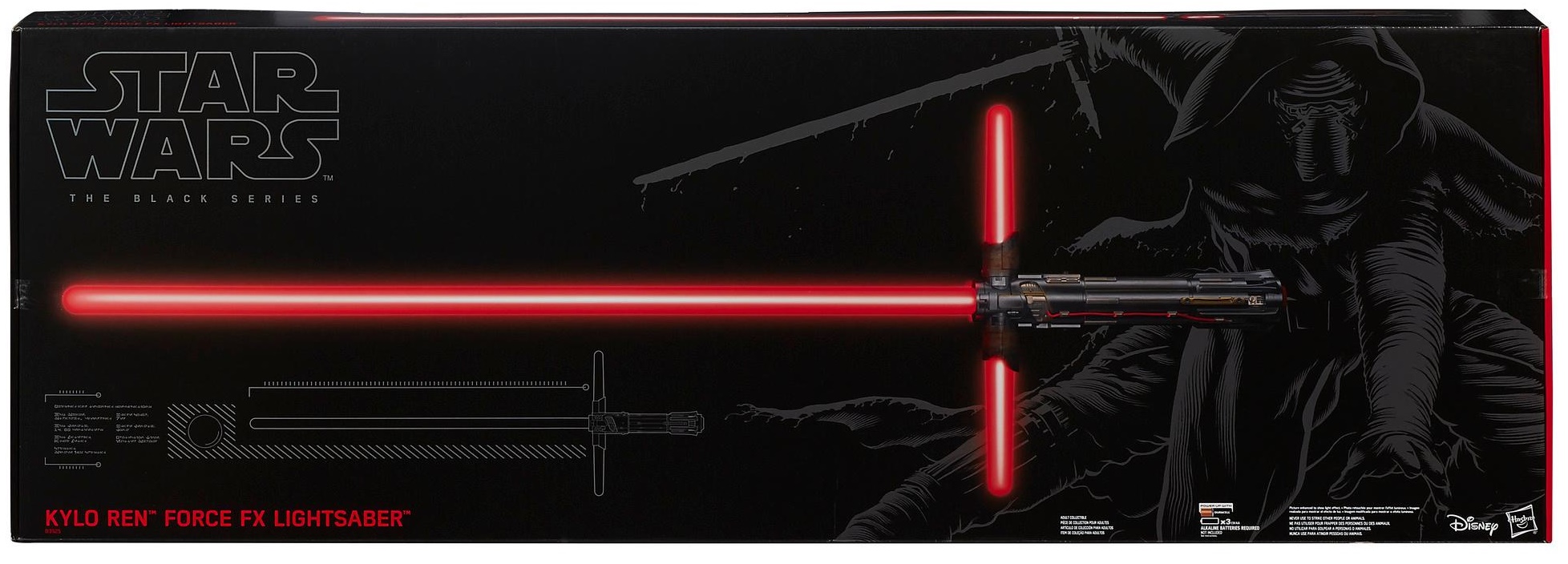 Star Wars Black Series Force Awakens Kylo Ren Deluxe FX Lightsaber features classic light and sound effects, and a real metal hilt. Requires 3 "AA" batteries, which are not included.